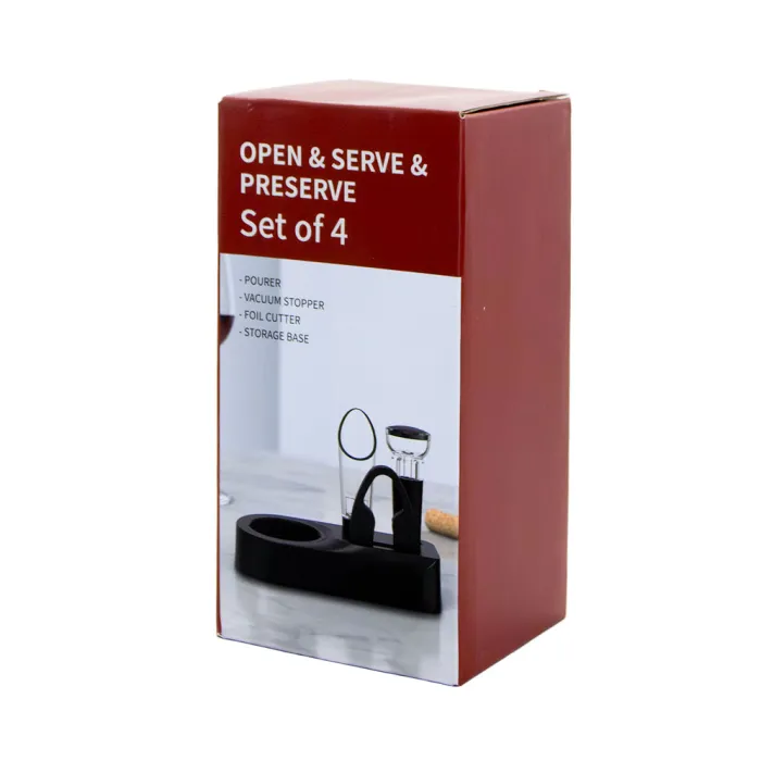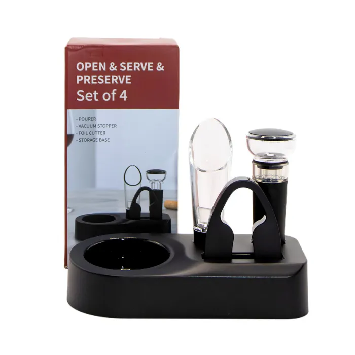 Kit 4 em 1: Aerador, Cortador de Lacre, Tampa e Bomba a Vácuo