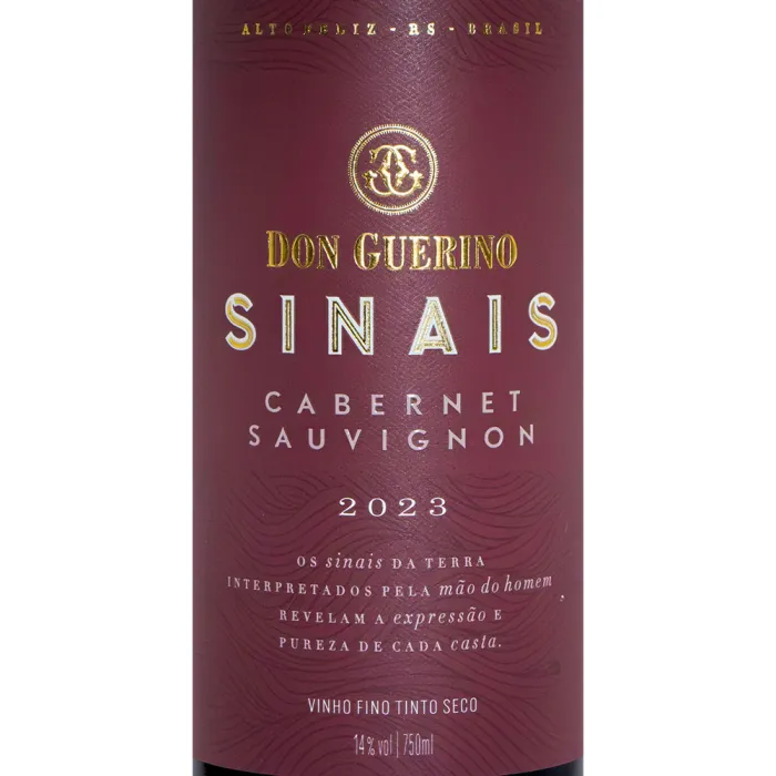 O Don Guerino Sinais Cabernet Sauvignon é um tinto brasileiro jovem, fresco e frutado, que expressa muito bem as características da Cabernet Sauvignon na Serra Gaúcha. No nariz, apresenta aromas de frutas vermelhas e negras, como cereja, amora e ameixa, além de toques sutis de especiarias e ervas. No paladar, é leve para médio, com taninos macios, acidez equilibrada e final agradável e frutado. Um vinho versátil, fácil de beber, que harmoniza muito bem com carnes leves, massas com molhos vermelhos, pizzas e queijos semicurados.