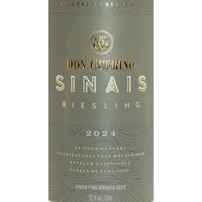 O Don Guerino Sinais Riesling é um vinho branco fresco, elegante e muito aromático. No nariz, apresenta notas cítricas, como limão siciliano e lima, além de toques florais e minerais, característicos da variedade. No paladar, é leve, com acidez vibrante, muito refrescante e final agradável, que convida ao próximo gole. Perfeito para dias quentes e excelente acompanhamento para frutos do mar, peixes, comida japonesa, saladas e queijos leves.