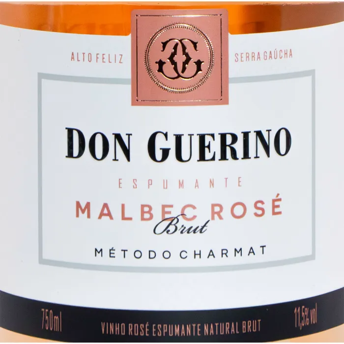 O Espumante Don Guerino Brut Rosé Malbec é um dos raros espumantes brasileiros elaborados exclusivamente com a uva Malbec. Apresenta coloração cereja brilhante e perlage fino e intenso. No nariz, revela aromas de frutas vermelhas frescas, rosas e goiaba. Em boca, é refrescante, com espuma cremosa e persistente. Ideal para harmonizar com saladas, pizzas, risotos, carnes brancas, queijos, sushis e peixes.