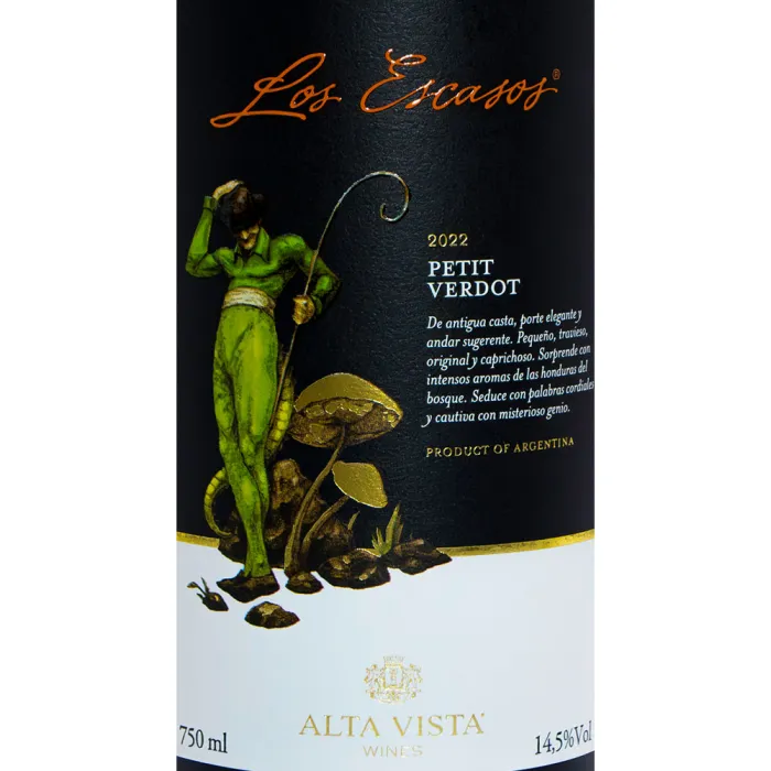 O Los Escasos Petit Verdot, de edição limitada da linha Los Escasos da Alta Vista, apresenta coloração roxa profunda e aromas marcantes de frutas negras. Em boca, é untuoso, persistente, com boa estrutura e ligeira astringência, beneficiando-se de decanter antes do serviço. Ideal para carnes vermelhas intensas e queijos de sabor pronunciado.
