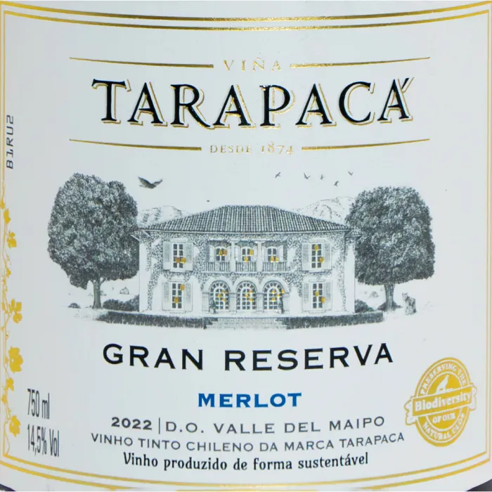 O Tarapacá Gran Reserva Merlot apresenta aromas de frutas vermelhas maduras, como cereja e ameixa, combinados com delicadas notas de baunilha e especiarias provenientes do carvalho. Em boca, é macio e equilibrado, com taninos suaves e final agradável, perfeito para acompanhar carnes grelhadas, massas e queijos.