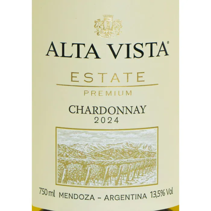 O Alta Vista Estate Premium Chardonnay exibe coloração amarela intensa com reflexos esverdeados e entrega aromas tropicais combinados a notas delicadas. Em boca, é fresco, aveludado, com corpo médio e final persistente, sendo fruto do Vale do Uco e do cuidadoso estágio em barrica.