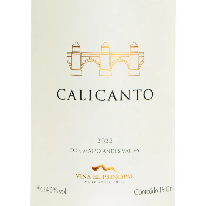 Calicanto é o nome da primeira ponte construída sobre o Rio Mapocho, entre 1767 e 1782, em Santiago. Simboliza a união entre a tradição e a modernidade, o Novo e o Velho Mundo.Rubi profundo com reflexos violáceos. Impressionante intensidade aromática, com frutos silvestres (mirtilo, amoras, groselha preta), ervas, especiarias e baunilha. Encorpado, amplo, com taninos macios, muito acessível e prazeroso.