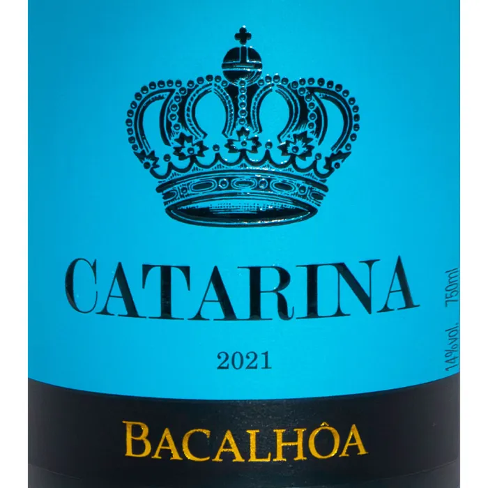 Bacalhôa Catarina Tinto, um dos vinhos tintos portugueses mais conhecidos e apreciados no Brasil. Produzido pela Bacalhôa na Península de Setúbal, este vinho é um blend de uvas que geralmente inclui a tradicional Castelão junto com variedades internacionais. É um tinto macio, frutado e muito versátil, perfeito para acompanhar diversas refeições do dia a dia.